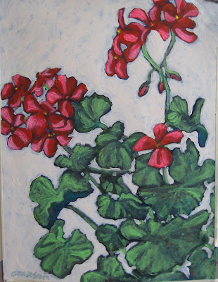 "Geraniums" by Polly Jackson, acrylic on canvas